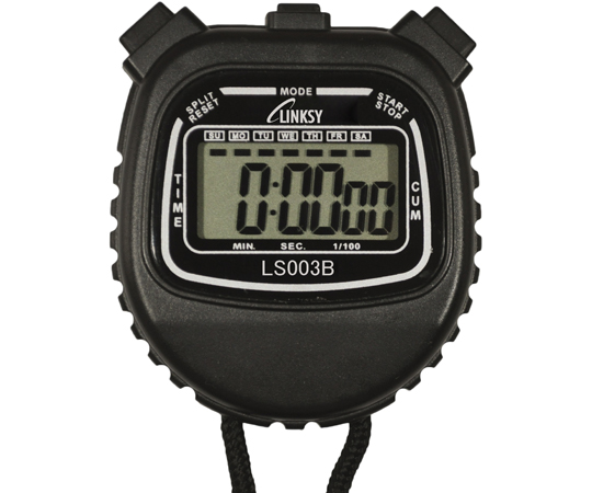 ●表示内容:ストップウォッチ:1/100秒表示、スプリットタイム表示・デュアルタイム表示、計測時間23時間59分59秒、時計:12H/24H切替式(平均月差±45秒)