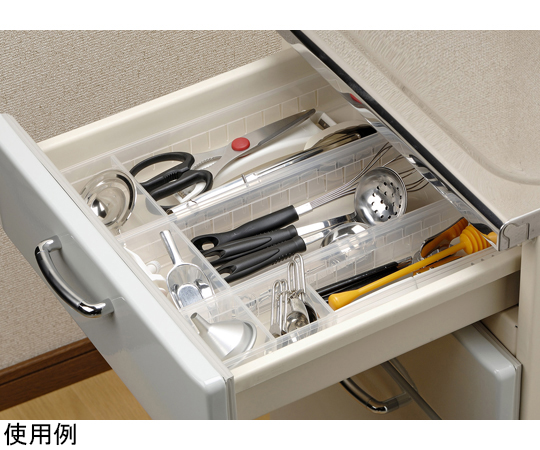 ●キッチン周りにある引き出しで、調理小物やお弁当小物を整理するのに便利な引き出し用トレーです。