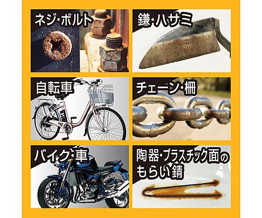 ●金属面(鋼、鎌、ハサミ、ノコギリ、農具、ネジ、ボルト、自転車、車体、スキー板のエッジ等)の錆落とし