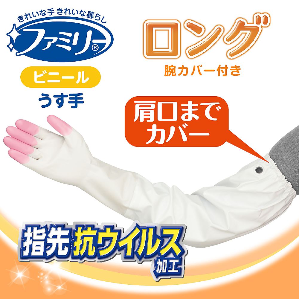 ●肩口までの腕カバーがついたロングタイプのため、腕全体を水や汚れから守ります。
