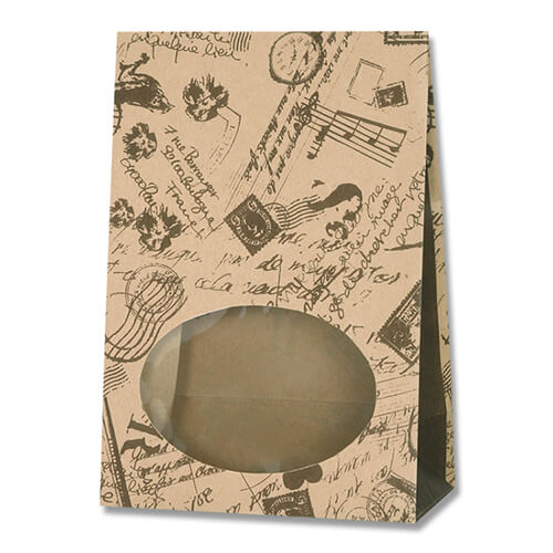 ヴィンテージ風デザインの窓付き角底袋。