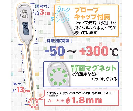 ●測定プローブの先端が1.8mmと細いため応答速度が速く、被測定物の「さし跡」が目立ちません。