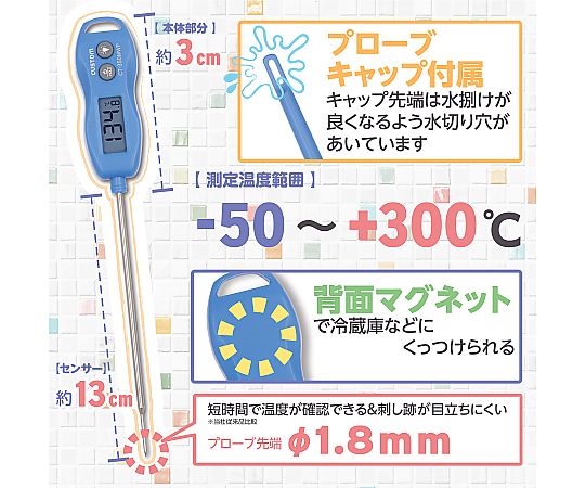 ●測定プローブの先端が1.8mmと細いため応答速度が速く、被測定物の「さし跡」が目立ちません。