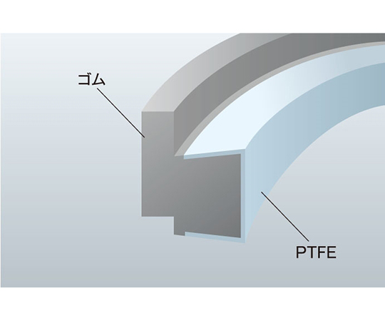 ●弾力性を持ったゴム製サニタリーガスケットの表面を、耐薬品性、耐熱性および耐汚染性に優れたPTFE樹脂フィルムで覆ったサンドイッチ型の複合ガスケットです。