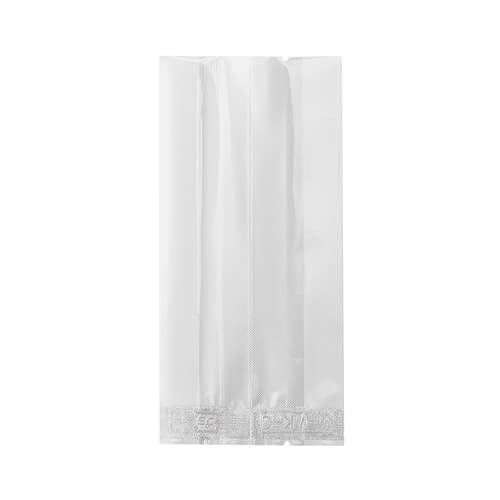 お菓子の表面が崩れにくいエンボス加工を施したガゼット袋。内寸は70×30×140mmです。