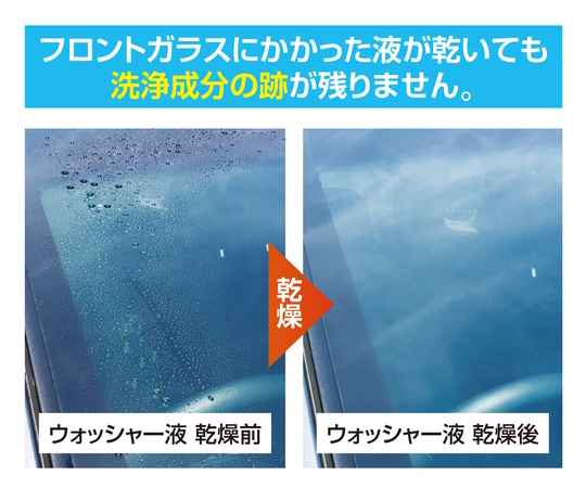 ●ウォッシャー液を噴射後に、フロントガラス周りに洗浄成分の垂れジミ、白残りがありません。