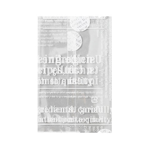 英字柄を白印刷したシンプルな平袋。内寸は90×130mmです。