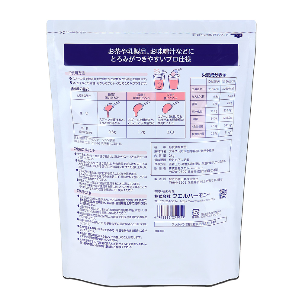 ●お茶や乳製品、味噌汁などにとろみがつきやすく、優れたコストパフォーマンスを実現したプロ仕様です。