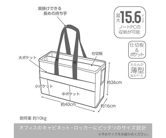 ●オフィスのキャビネット・ロッカーにピッタリのサイズ設計なのでフリーアドレスにも最適です。