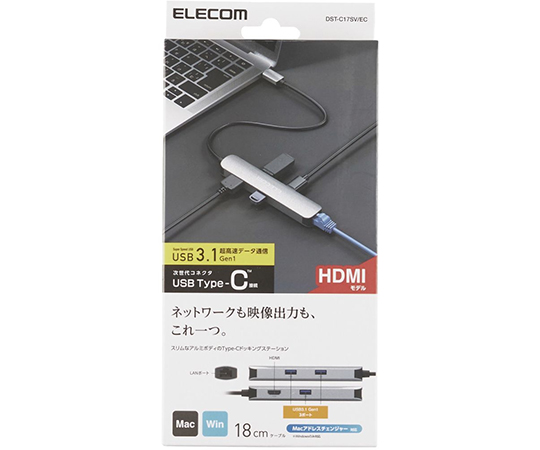 ●コネクタ仕様(アップストリーム):USB3.1 Type-C<Gen1(5Gbps)>、DisplayPort Alt mode(USB2.0接続時はUSB2.0互換で動作(USB2.0時は映像出力非対応))