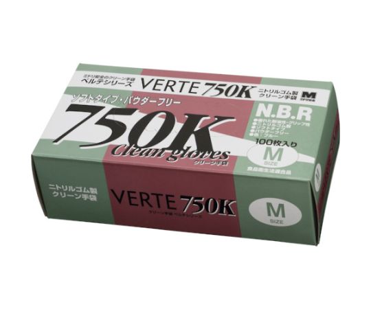 ニトリル使い捨て手袋 ベルテ750K ブルー 粉なし 100枚入 Mサイズ