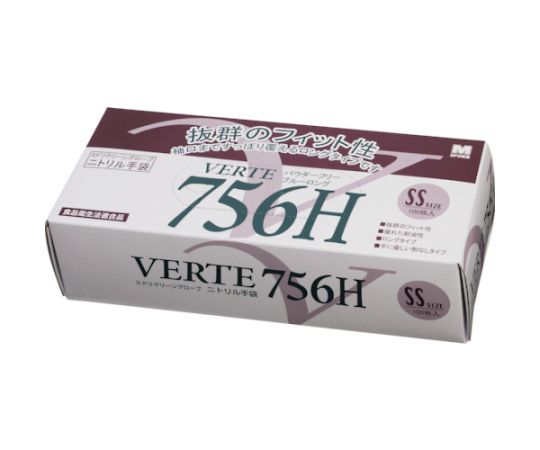ニトリル使い捨て手袋 ベルテ756H ブルー ロング 粉なし(100枚入)SSサイズ