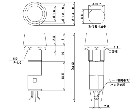 ネオンブラケット 円筒型・フード付 AC200V~250V 赤