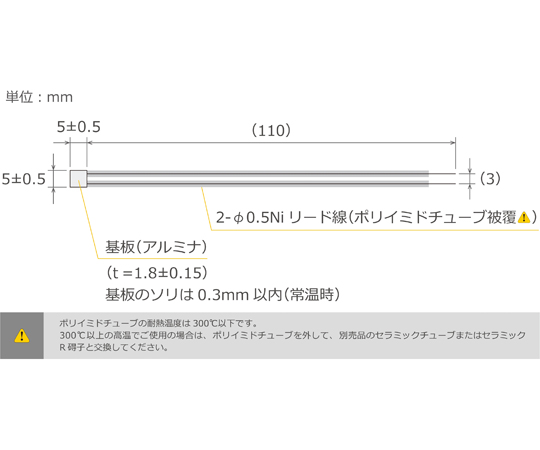 ●▼ポリイミドチューブの耐熱温度は300℃以下です。300℃以上の高温でご使用の場合は、ポリイミドチューブを外して、別売品の碍子と交換してください。