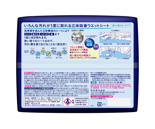 ●ベタベタ汚れのリセット清掃に!洗浄液を含んだ立体構造のシートで、ホコリ・髪の毛から皮脂・泥・食べこぼしまで1度に拭き取れます。