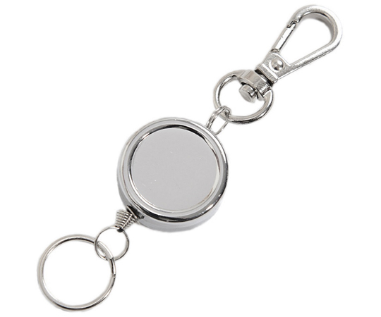 ●小型のカラビナ付きの伸縮自在の鋼線が付いている便利なリールストラップです