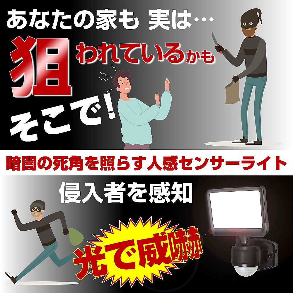 ●暗闇でセンサーが人や車の動きを検知して自動点灯