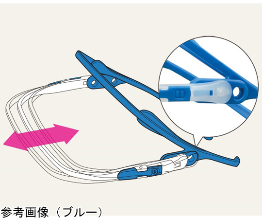 ●顔のサイズに合わせて、アームが3段階で調整可能(メガネとの併用も可能)。