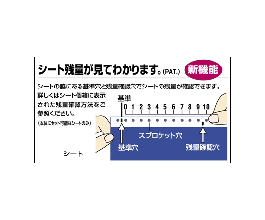 ●新ビーポップシートは、シートの脇に確認穴を設け、残量が目視でわかるようリニューアルしました。