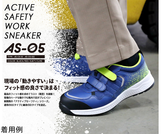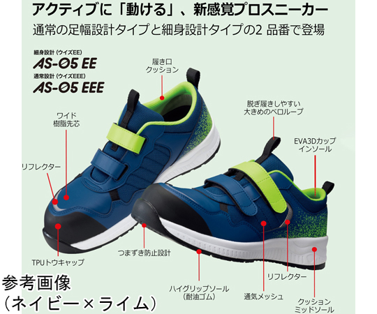 JSAA A種認定 アクティブセフティ ワークスニーカー AS-05(ワイズEEE) ネイビー/ライム 27.0cm