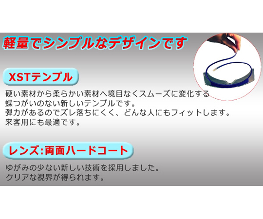 ●XSTテンプル:硬い素材から柔らかい素材へ境目なくスムーズに変化する蝶つがいのない新しいテンプルです。弾力があるのでズレ落ちにくく、どんな人にもフィットします。来客用にも適しています。