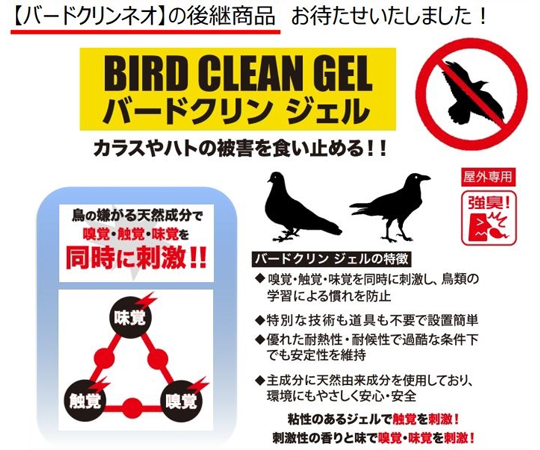 ●鳥の嫌がる天然成分で嗅覚・触覚・味覚を同時に刺激し、鳥類の学習による慣れを防止!
