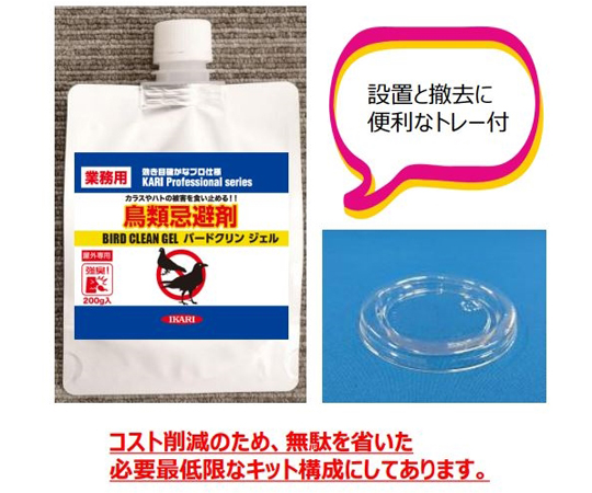 ●【付属のトレーを使用する場合】:※まず設置する場所をきれいに清掃してください。 1.別途用意のテープで設置する場所にトレイを固定。 2.バードクリンジェルを開封し固定したトレイに約25g注入。