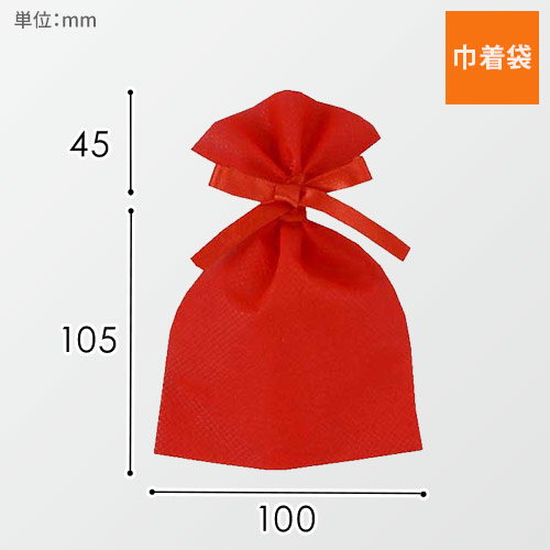 サイズは幅100×高さ150(絞り口まで105)mmで両面不織布製のシンプルな巾着袋。