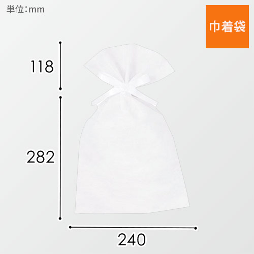 サイズは幅240×高さ400(絞り口まで282)mmで両面不織布製のシンプルな巾着袋。