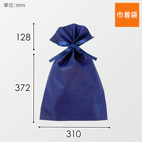 サイズは幅310×高さ500(絞り口まで372)mmで両面不織布製のシンプルな巾着袋。