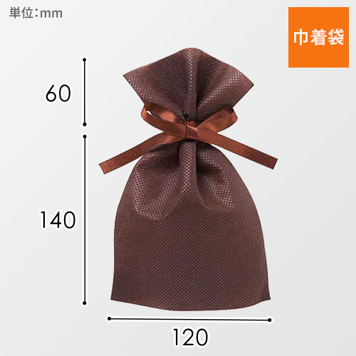 サイズは幅120×高さ200(絞り口まで140)mmで両面不織布製のシンプルな巾着袋。