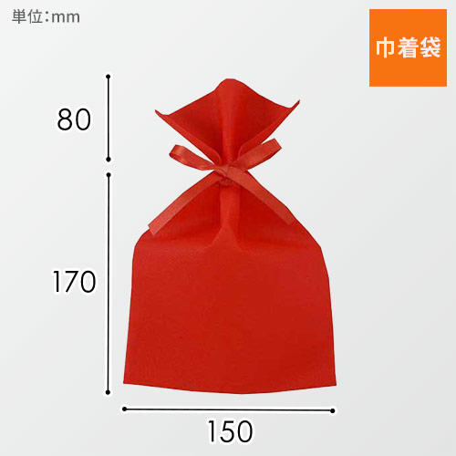 サイズは幅150×高さ250(絞り口まで170)mmで両面不織布製のシンプルな巾着袋。