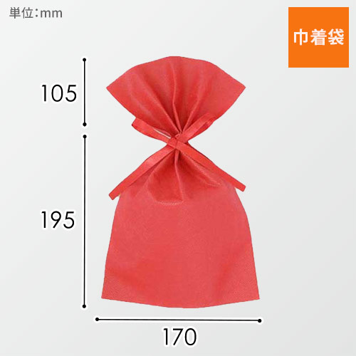 サイズは幅170×高さ300(絞り口まで195)mmで両面不織布製のシンプルな巾着袋。