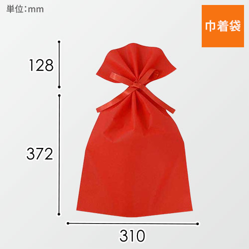 サイズは幅310×高さ500(絞り口まで372)mmで両面不織布製のシンプルな巾着袋。