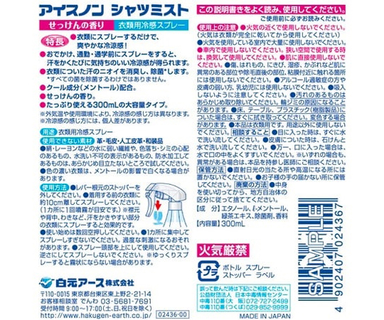 ●成分:エタノール、Lメントール、緑茶エキス、除菌剤、香料