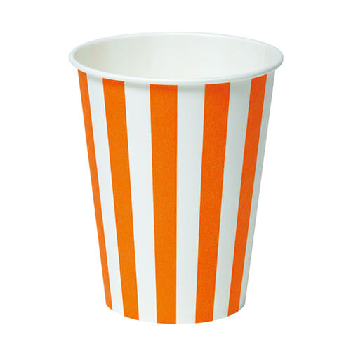 オレンジストライプ柄のホット&コールド用の紙コップです。