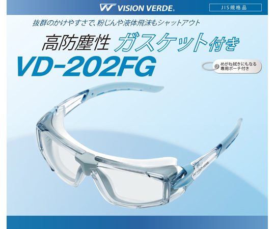 JIS/ANSI規格品 保護めがね ビジョンベルデ VD-202FG(曇り止め加工) 高防塵性ガスケット付き