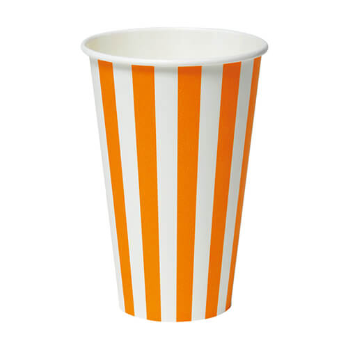 オレンジストライプ柄の定番のコールド用紙コップです。