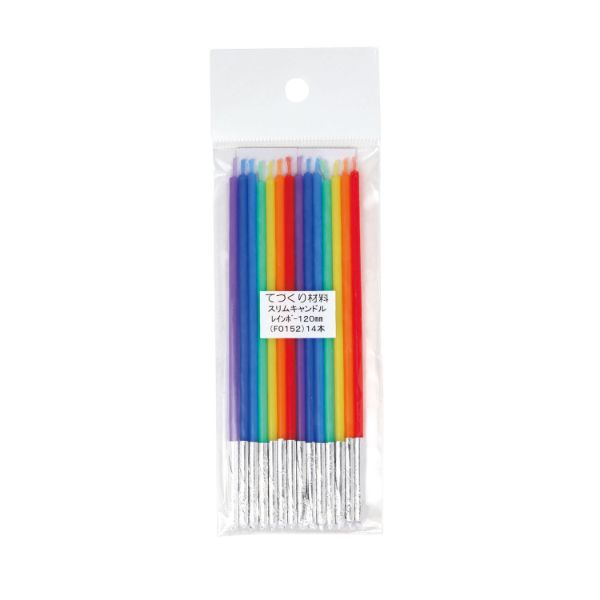 レインボーカラーのスリムなキャンドルです。手作りバースデーケーキやパーティーシーンの演出におすすめです。14本入。サイズ:12cm材質:パラフィン12cm