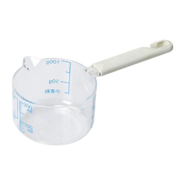 お米も計れる2通りの目盛付。液体・お米の両方がはかれる表示です。左右どちらからでも注ぎやすい両口付き。電子レンジ不可。[原産国]日本。サイズ:全長180×幅100×55mm材質:[本体]メタクリル樹脂(耐熱温度110度)、[ハンドル]ポリプロピレン(耐熱温度120度)重量:62g全長180×幅100×55mm