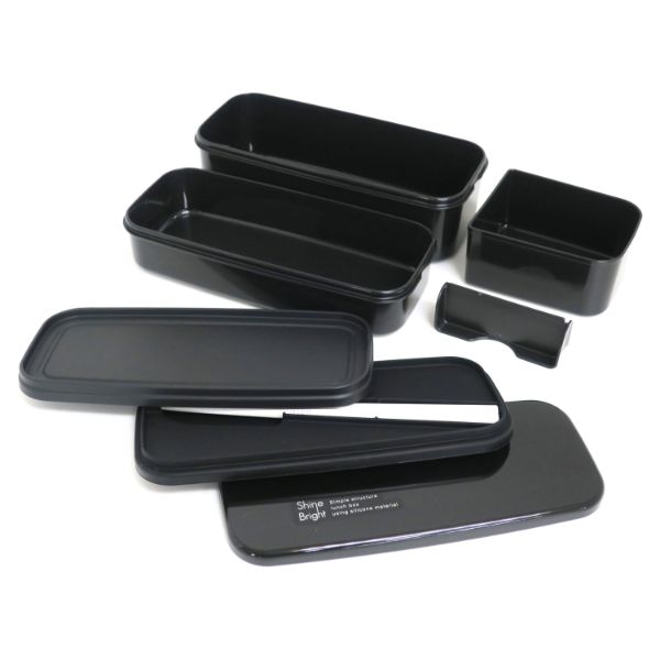 止め具を使わないシンプル構造。壊れにくい&洗いやすい。シリコーンゴム製のシールフタでピタッと密閉!パッキン不使用。(ランチボックス二段は、シールフタ(上)のみがシリコーンゴム製です。)フタを外して電子レンジOK。食器洗浄機・乾燥機OK。18cmの箸・仕切・中子・ランチベルト付き。抗菌剤入り(本体上下・仕切・中子・箸)。日本製。