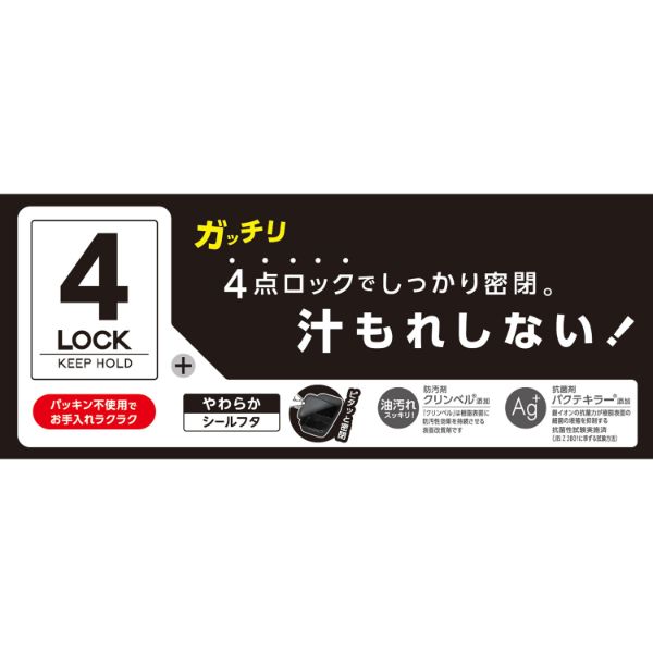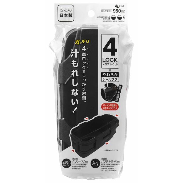 ガッチリ4点ロック+やわらかシールフタでしっかり密閉、汁もれしない!パッキン不使用でお手入れラクラク。食べ終わったらコンパクトに収納できます。フタを外して電子レンジOK。食器洗浄機・乾燥機OK。19.5cmの箸・仕切付き。抗菌剤・防汚剤入り(本体(上・下)・仕切)。日本製。