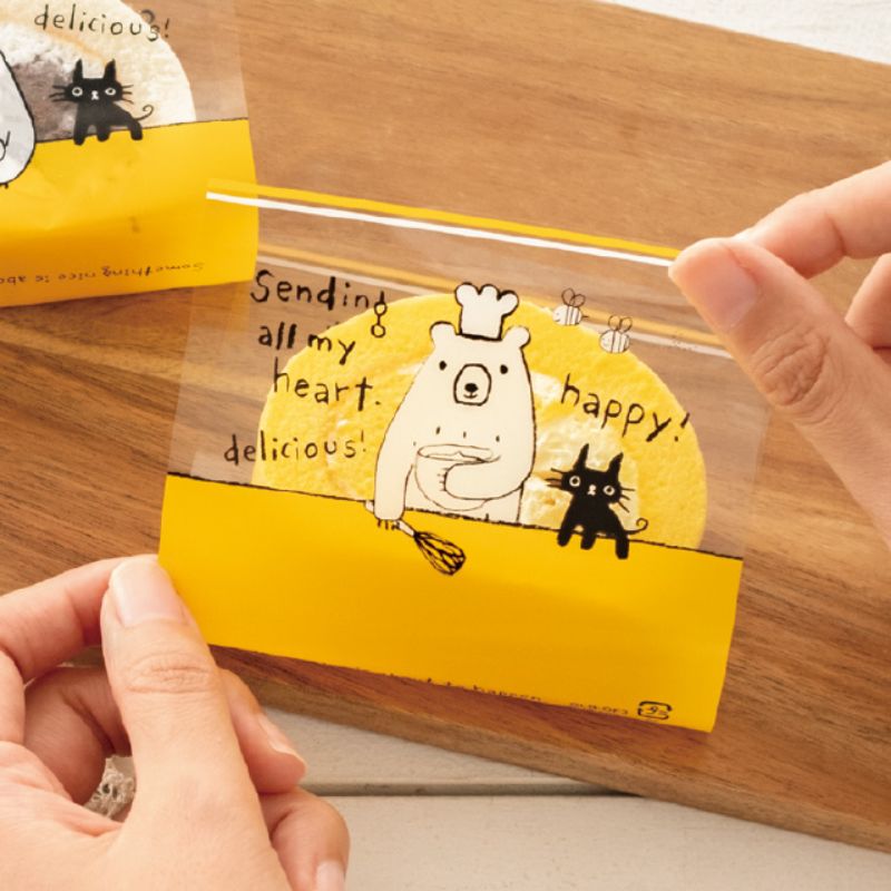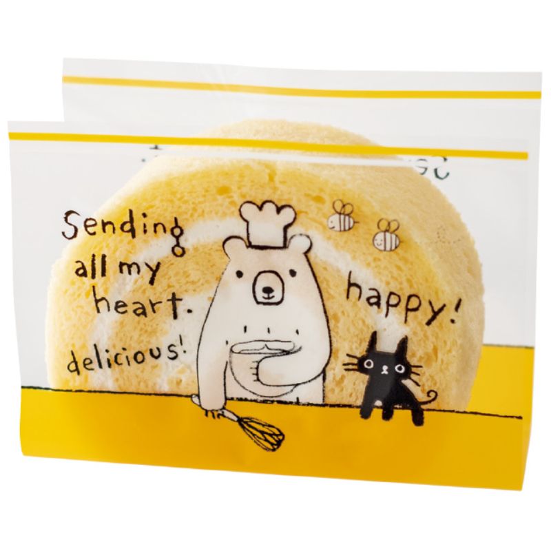 人気のグラットンベアシリーズからカットロールケーキにぴったりの食品対応フィルムが登場。カットロールケーキを、より楽しく美味しそうに魅せるフィルムです。食品対応。片面デザイン。サイズ:W100×H180mm、[厚み]0.025mm材質:OPP(透明)180×100mm