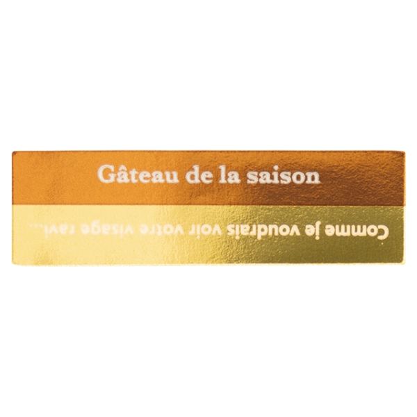オレンジとゴールド(金色)のツートーンカラーのアルミ製ケーキピックです。チョコレート細工では手間のかかる複雑な立体パーツも、アルミ製のケーキピックなら簡単!曲げたりねじったり、使い方は自由自在。動きのあるピックがケーキの色んな顔を引き出します。片面デザイン。食品対応。サイズ:W45×H13mm材質:ホイル紙、PP45×13mm
