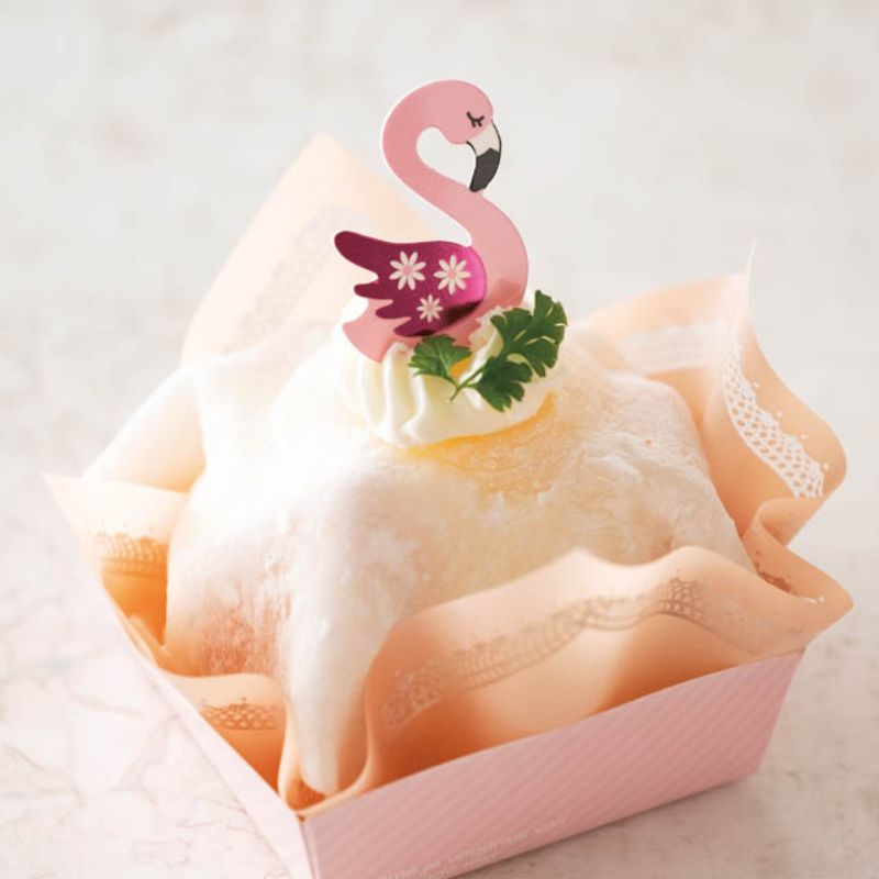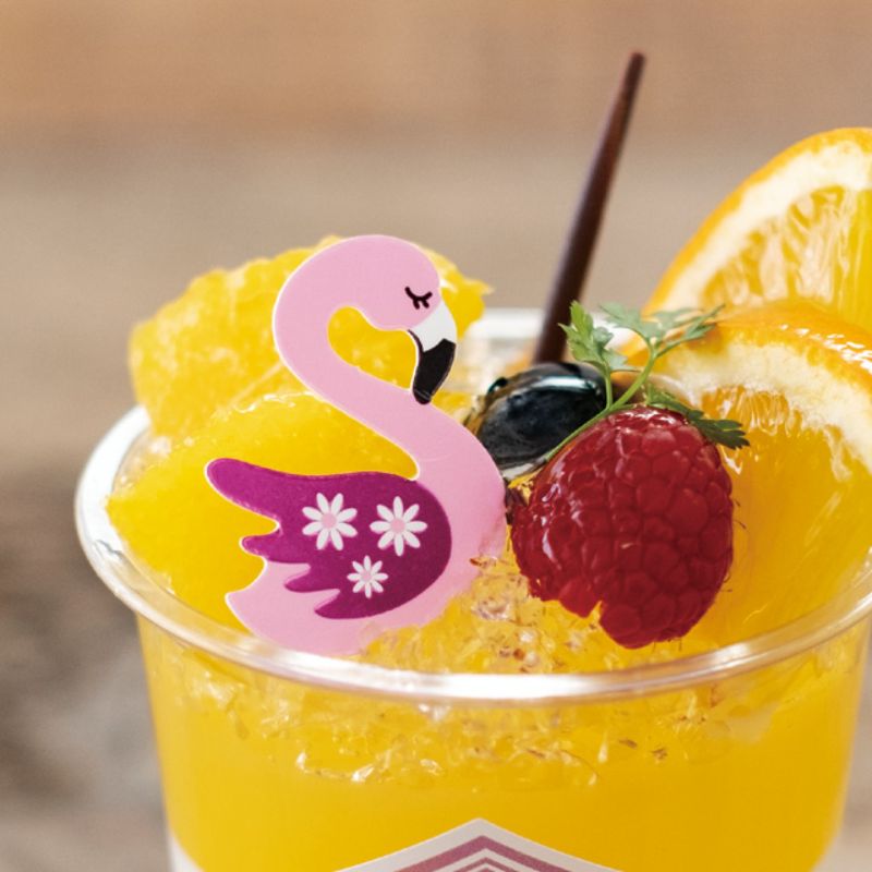 鮮やかなピンクが目を惹くフラミンゴのケーキピックです。ゼリーや夏の冷たいケーキなどのデザートに使うと、涼しげな印象と可愛さアップでおすすめです。片面デザイン。食品対応。サイズ:W30×H35mm材質:PP35×30mm