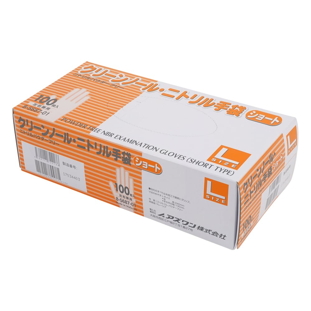 クリーンノール ニトリル手袋 ショート (パウダーフリー) ホワイト L 100枚入