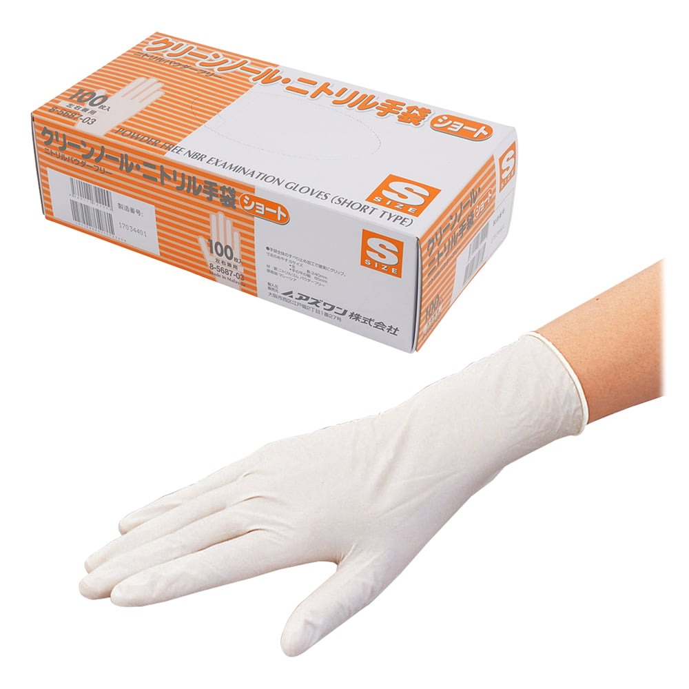 ●*本製品は【8-5687-03(クリーンノールニトリル手袋ショート(パウダーフリー)ホワイトS100枚入)×10箱】のケース販売用の品番となります。