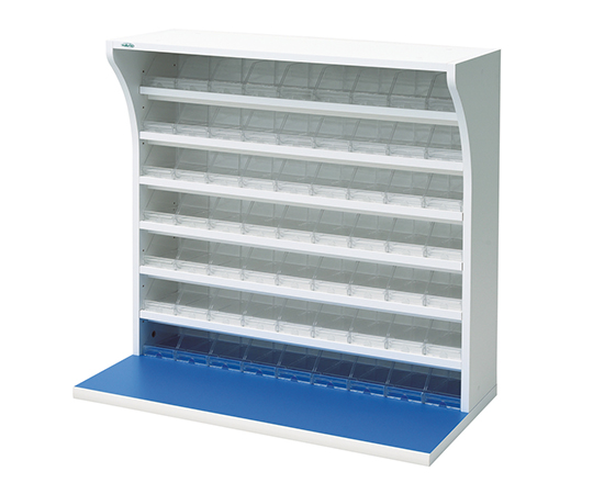 ●仕様:薬品棚(オープントレー9列7段)本体/プリント合板、天板/メラミン化粧合板、樹脂トレー/PS(ポリスチレン樹脂)