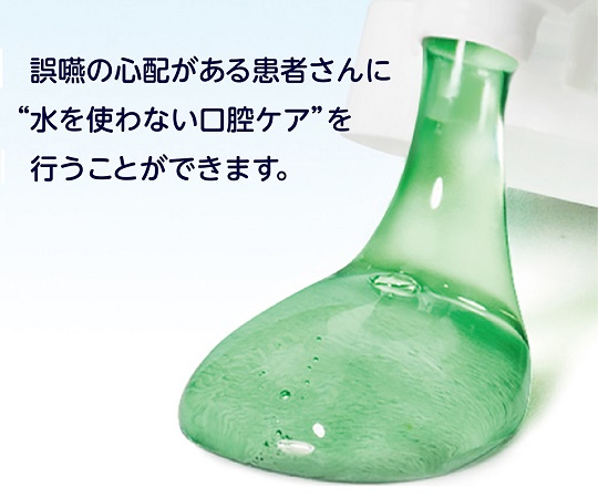 ●要介護高齢者の口腔ケアに適した特性を追及して生まれた口腔ケア用ジェルです。水を使わず、のどの奥に流れにくいジェルで、まるでお口を洗ったようにきれいにすることを目指し、開発されました。