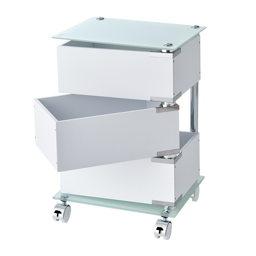 ●材質:パイプ/スチール、上下板/強化ガラス、引出し/MDFボード(中質繊維板)